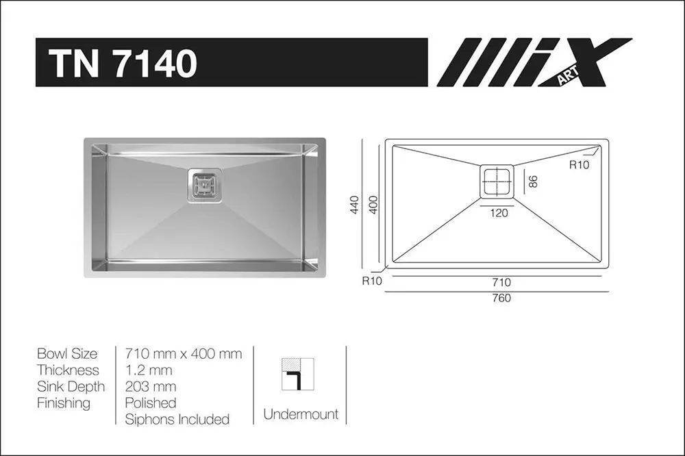 سینک استیل ایتالیایی میکس مدل TN7040N